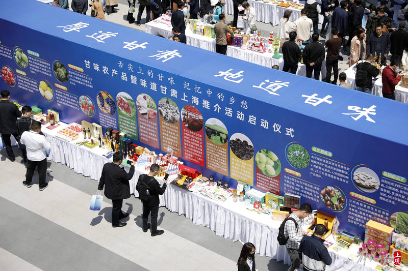 现场商务接洽氛围热烈。作为规模空前的甘肃名特优农产品出省展销,开拓以上海为核心的长三角市场是甘肃农产品的重要增长极。