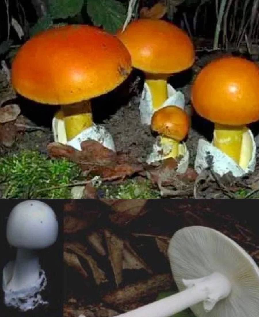 通过上面这张图,你肯定也能看出来,“以貌取菌”是不靠谱的,颜色鲜艳的不一定是“坏蘑菇”,颜色朴素的也不一定是“好蘑菇”,比如橙盖鹅膏,长得挺鲜艳,也挺好吃,而致命鹅膏看着白白净净,致死率却高达95%以上。