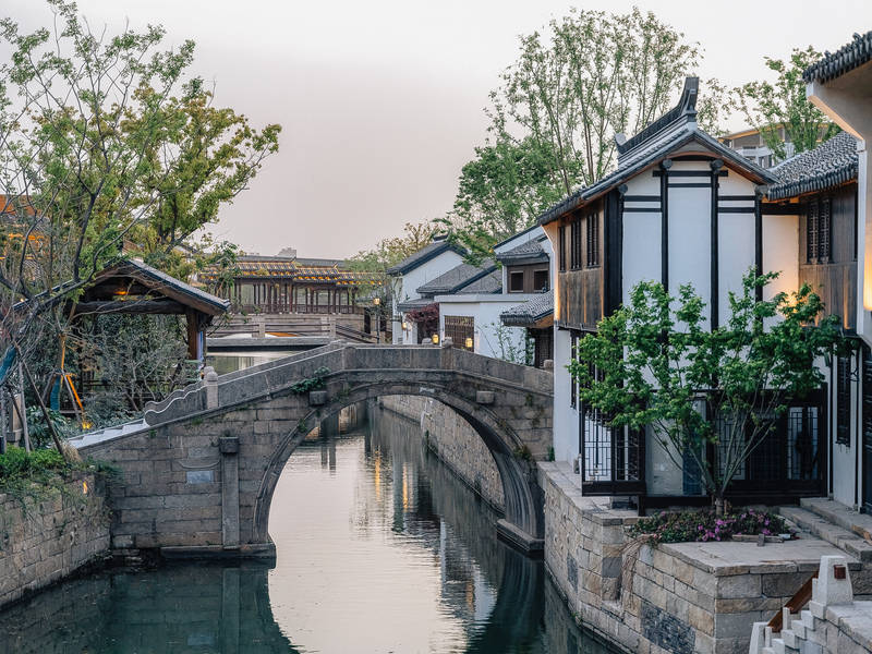 蟠龙天地还原江南水乡风格,建筑为新旧融合