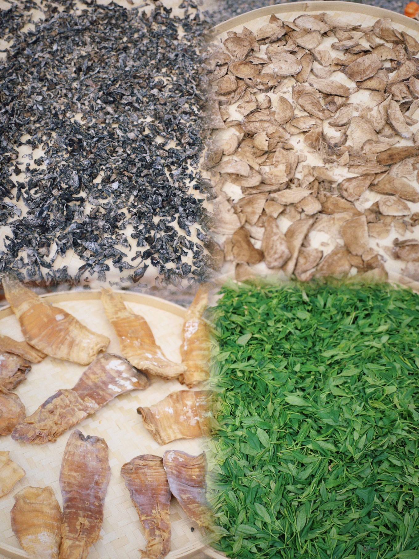 村民们的家门口最近都在“晒春”,因为当地盛产高山茶叶,粽叶,葛根,春笋干,也是船坑村的一道亮丽风景。