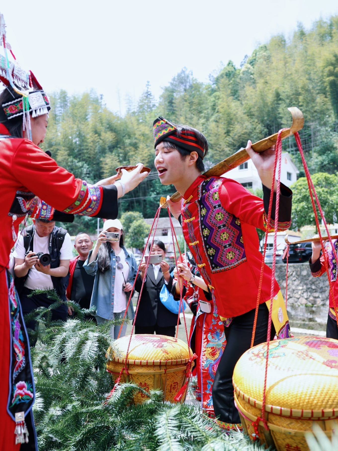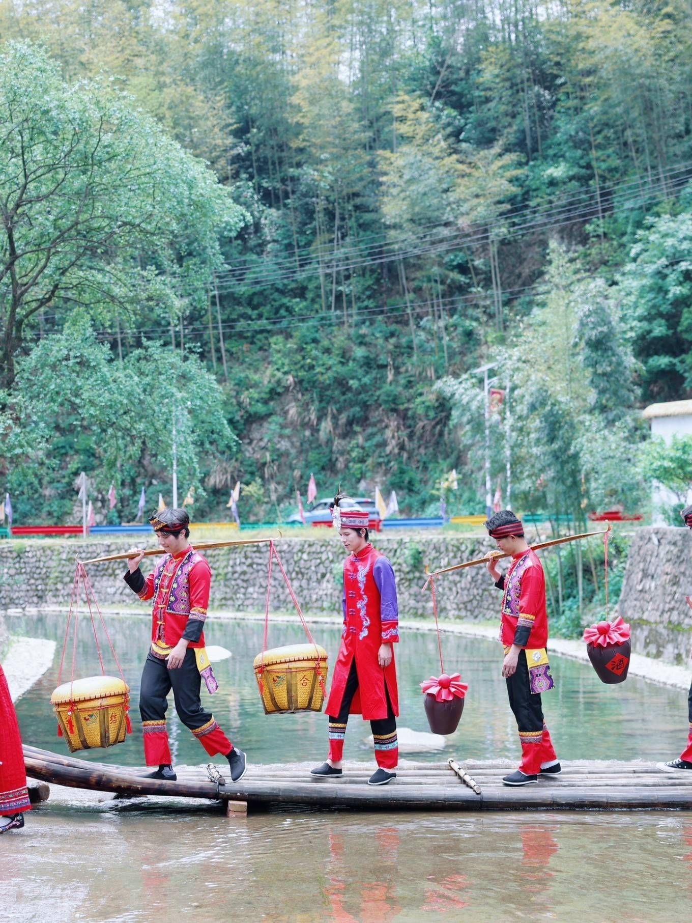 每一个少数民族都有自己的婚俗特点,五府山这边也不例外,今天跟着新人体验了一把纯正的畲族婚礼。