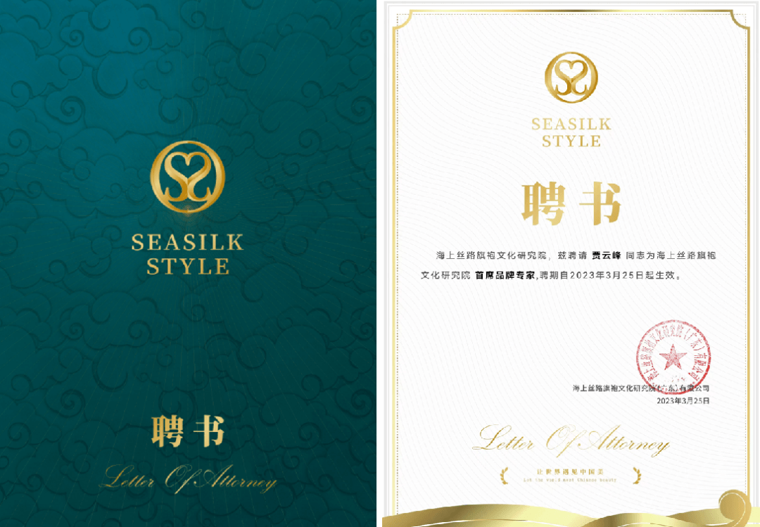 海丝时尚集团是一家致力打造中国旗袍文化产业品牌,构建特有的旗袍文化IP。旗下拥有旗袍文化交流平台、赛事品牌营销策划服务平台、旗袍服饰研发设计和销售平台等。此前,贾云峰先生受聘担任海上丝路旗袍文化研究院首席品牌专家。