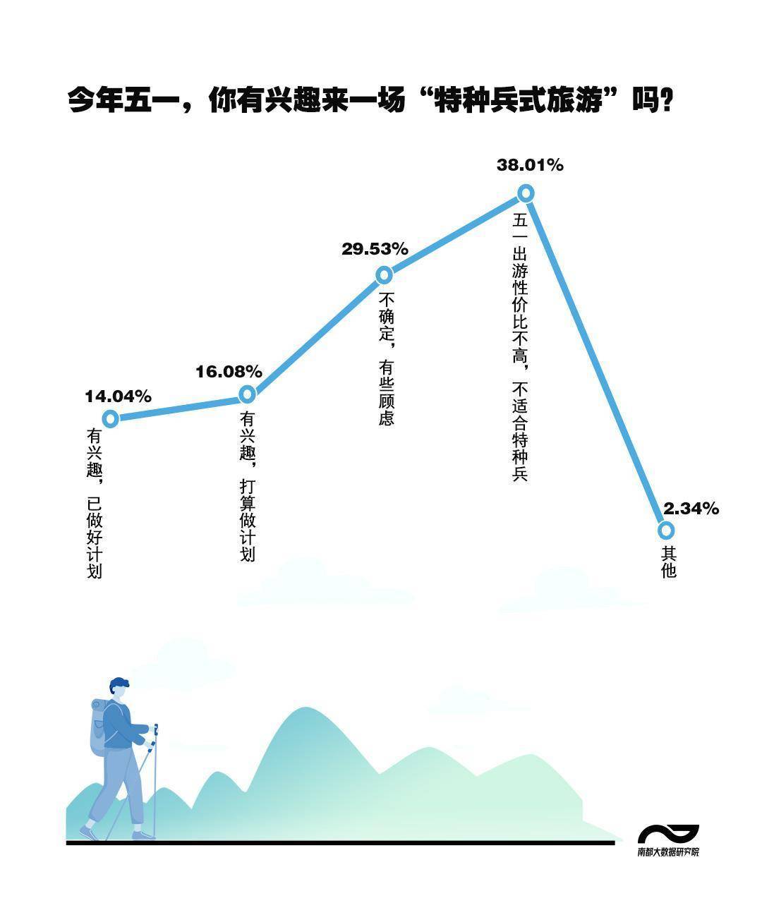 五一假期将至,大家有兴趣来一场“特种兵式旅游”吗?全体受访青年中,30.12%表示有兴趣,其中14.04%表示已做好计划,16.08%表示打算做计划。