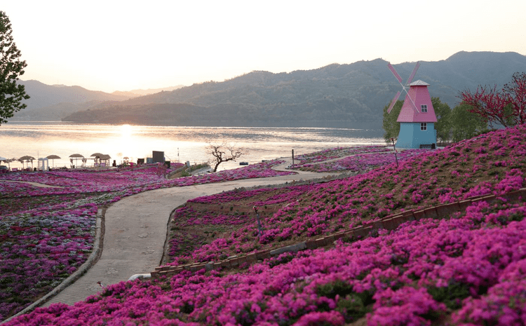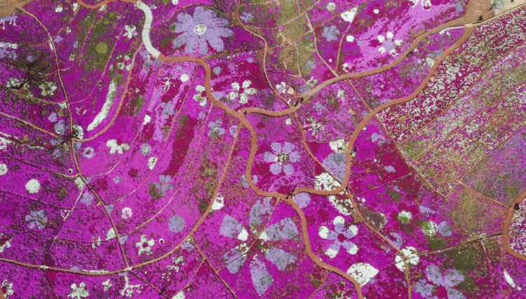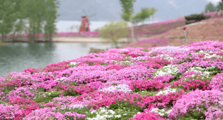 漫山遍野的芝樱花海迎着春风展露姿容,从空中俯瞰,如巨毯覆盖山坡,蔚为壮观;走在由芝樱花铺就的“彩色地毯”之中,周围弥漫着清新花香,令人心旷神怡。