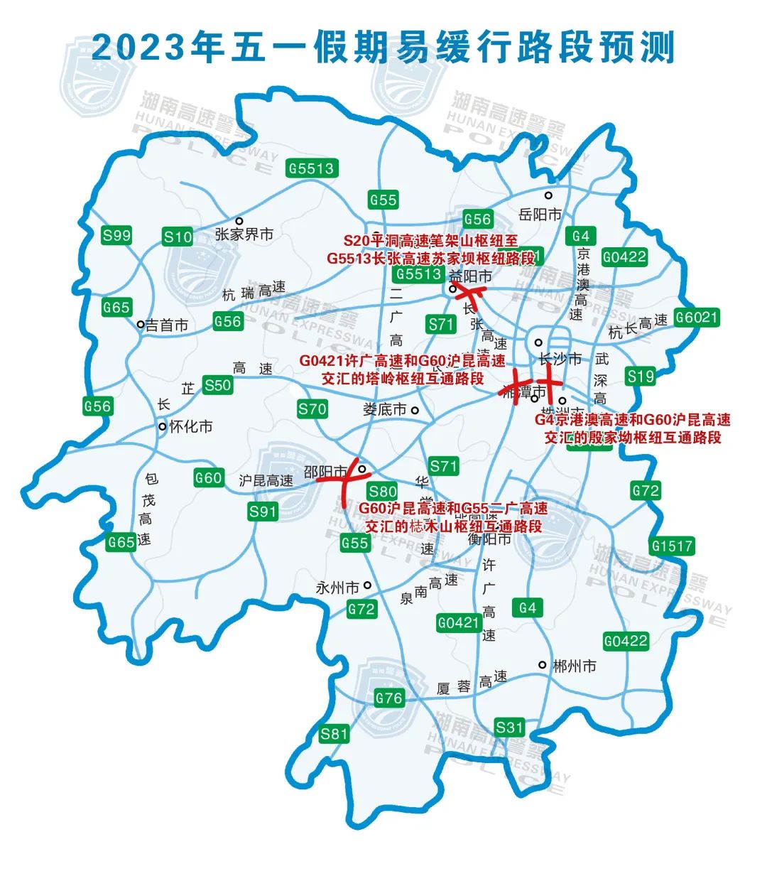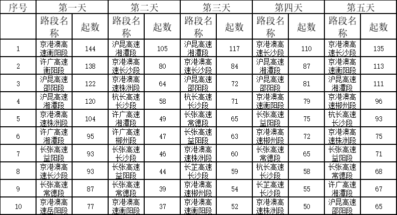 湖南高速五一假期交通态势研判及易缓行路段预测: