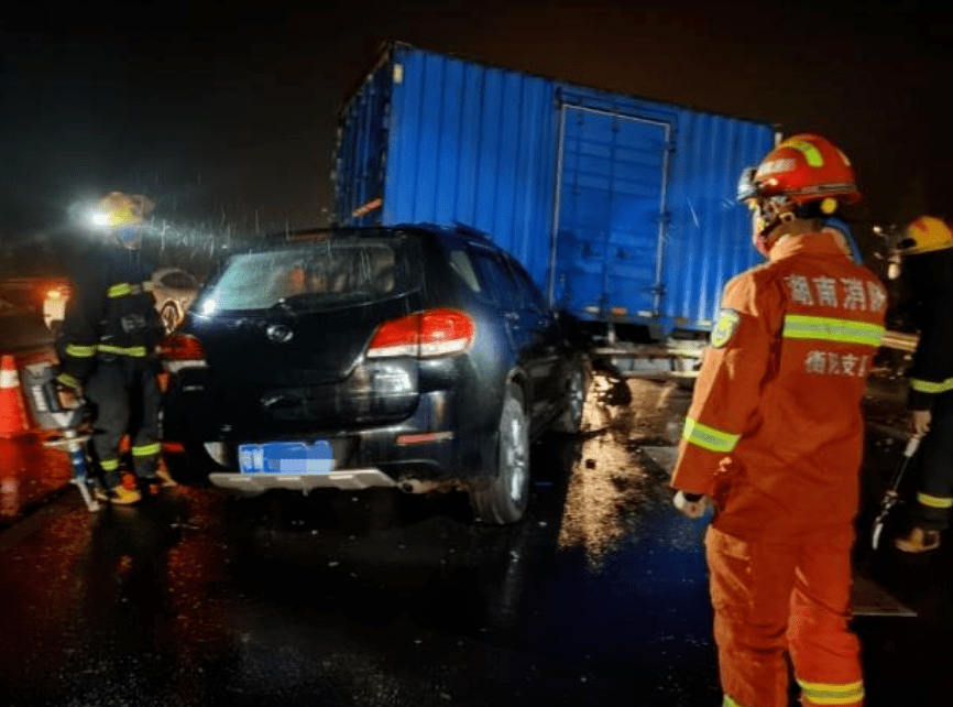 错过出口急踩刹车,后方货车避让不及追尾小车