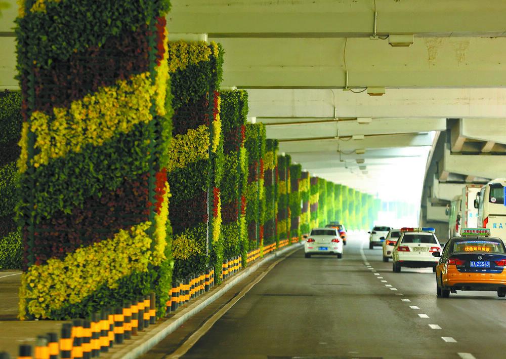 桥体绿化建设包含桥柱绿化和桥上挂花两部分。其中桥柱绿化为今年重点打造的绿化景观,共610个,在去年种植爬山虎和常春藤的基础上,新增了310个新式花柱,新式花柱主要位于西二环裕华路、和平路中华大街、北二环体育大街、中华大街槐安路等,多以种植常春藤、绿萝、大花海棠、吊兰为主。