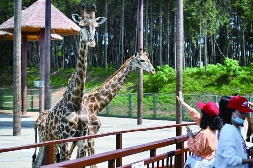 游客在常德野生动物世界游览观光时与动物亲密接触。全媒体记者 郭立亮 通讯员 范晖 摄