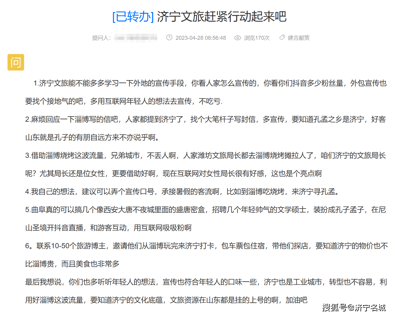 最后我想说,你们也多听听年轻人的想法,宣传也符合年轻人的口味一些,济宁也是工业城市,转型也不容易,利用好淄博这波流量,要知道济宁的文化底蕴,文旅资源在山东都是挂的上号的啊,加油吧