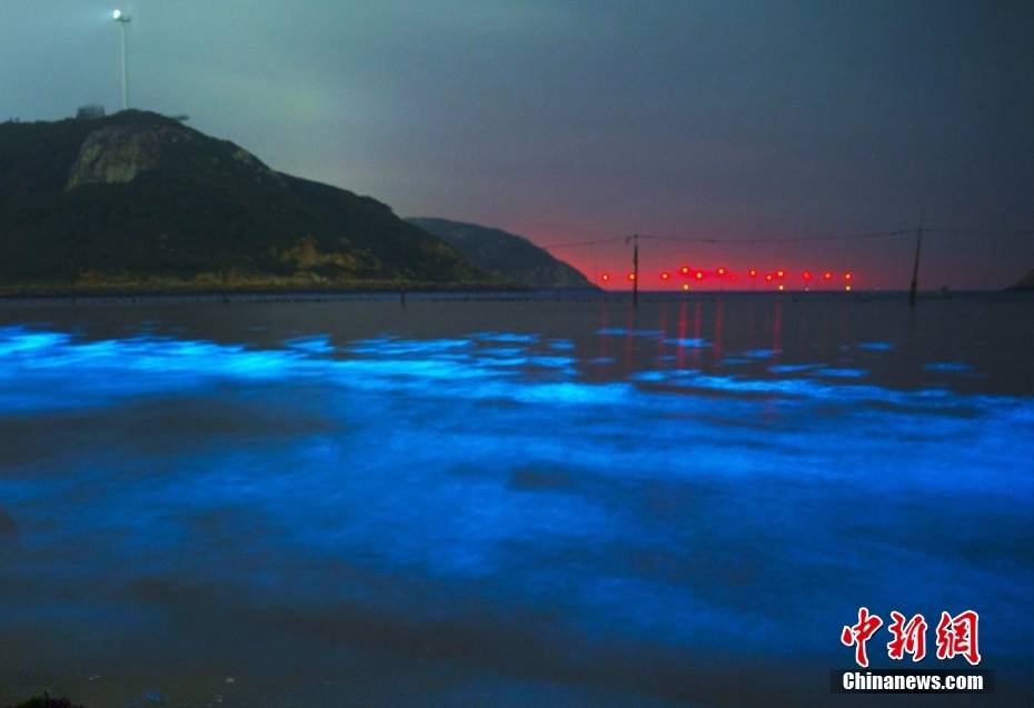 4月27日,福建平潭,北部海域出现“蓝眼泪”奇观。