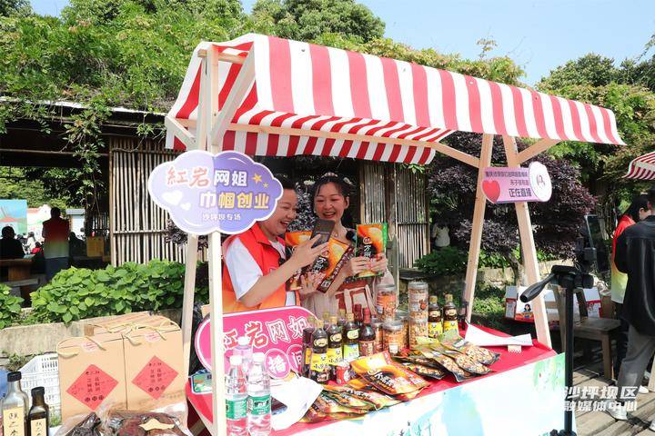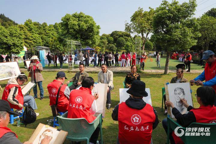 在开幕式现场,“耕春”“又听山乡唢呐声”“亲家争婚”“打哈哈”“在希望的田野上”等一个个紧扣乡村振兴主题,展现新时代、新农村、新面貌的乡土文艺节目依次上演,引得不少农民群众和游客驻足观看。而另一边,文艺志愿服务活动、乡风文明志愿服务活动、农民趣味运动会、农产品展示及直播带货、青年婚恋交友等5个各具特色的子活动在会场内同步开展。50余名文艺志愿者摆开画架、架起相机,免费为现场群众画像、拍照,展现沙坪坝区“人在画中游”的诗意田园美好场景、定格和美乡村的一个个美好瞬间;乡风文明签名墙前,现场近200名村民签名承诺,共享共建乡风文明新格局;农民趣味运动会的赛场上,70余人参加“选种子”“栽秧子”“推车子”“挑担子”等比赛项目,展现了新时代农民群众的蓬勃生机和崭新面貌;农产品展示会场人头攒动,3大类30余种特色农产品集中展示,并通过“红岩网姐直播间”在抖音、京东、拼多多等平台宣传推介;“青春之约·会聚良缘”活动现场洋溢着青春、勇敢、真诚的气息,青年男女在诗意田园下牵手告白,为和美乡村增添了几分温馨与浪漫。