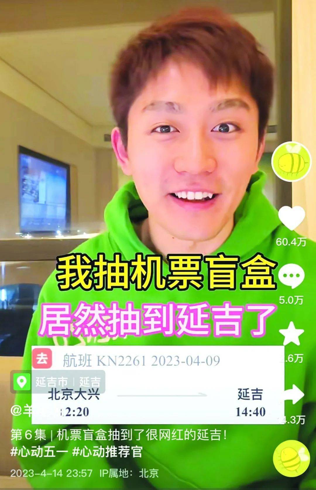 近日,抖音博主@羊毛月的三段“盲盒机票”延吉之旅收获了网友百万点赞,他的语言没有华丽的辞藻、没有炫丽的修饰,用简单的语言将延吉之美娓娓道来,吸引了更多人对延吉的向往。现在,越来越多的网友都在“许愿”,期待“盲盒机票”能抽中延吉市为目的地。