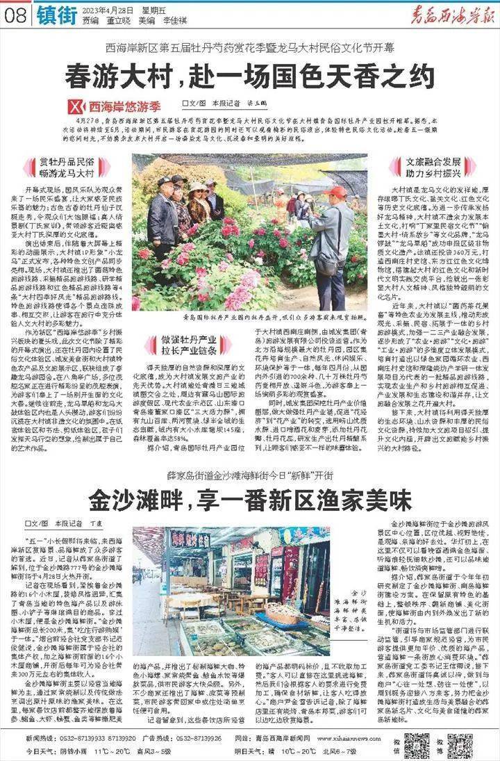 4月27日,青岛西海岸新区第五届牡丹芍药赏花季暨龙马大村民俗文化节在大村镇青岛国际牡丹产业园拉开帷幕。据悉,本次活动将持续至6月,活动期间,市民游客在赏花游园的同时还可以观看精彩的民俗演出,体验特色民俗文化活动。趁着五一假期的悠闲时光,不妨携亲友来大村开启一场濡染龙马文化、沉浸春和景明的美好旅程。