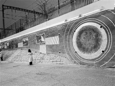 宇宙球体、太空飞行、数字代码……昔日北京尚8国际广告园内破旧且涂鸦痕迹明显的涵洞,如今迎面可见“元宇宙时光隧道”字样,两侧被粉刷的墙壁,呈现一张张富有科幻色彩的图绘。