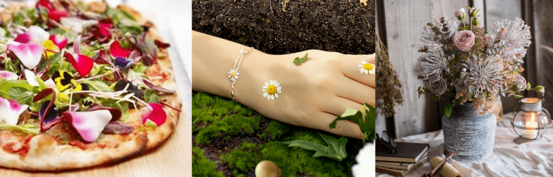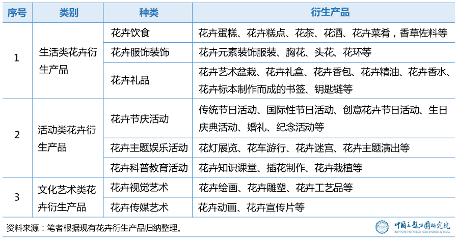 生活类花卉衍生产品主要是指与人们生活紧密相关的花卉产品,如花卉饮食、花卉服饰装饰、花卉礼品等。花卉饮食是指利用花卉的食用价值创造出各种营养丰富、外形美观的食品,如今人们也逐渐推崇“饮食回归自然”,花卉走向餐桌受到大众的欢迎。花卉与服饰、装饰的结合是指花卉图案点缀,以及丰富的饰品中加入花卉的元素。花卉礼品主要是指利用鲜花或干花制作而成的礼物或家庭摆设类物品,这些礼品有的不仅外观精美,还能够散发出花卉独特的香味,沁人心脾。在花卉主题公园中可将其转变为园内主题商品。