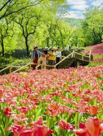 “五一”假期正是出游的好时节,红叶谷郁金香也正值盛花期,百万株郁金香盛放欧洲风情谷。多彩的郁金香将整个山谷装扮成不同的色块、色带,随地势起伏,与二月兰、蓝天白云、青山绿树、风车、木栈道相映成趣,营造出不同的景观效果,游人置身其中,仿佛畅游荷兰,感受异域风情。红叶谷“五一”期间将推出一系列特色活动,玩转彩虹滑道,丛林极速滑道;乐游红叶谷,幸运抽年票;红粉佳人免费福利大派送活动;绚秋湖划船戏水;孔雀王国天趣苑赏百雀开屏;寻泉之旅香巴拉休闲谷,找寻隐秘在山谷中的树屋……快相约亲朋好友,到红叶谷寻一方桃源,游山玩水,来一场奇妙出游,感受美好的假日时光吧。(本报记者吕传泉通讯员宋方海摄)