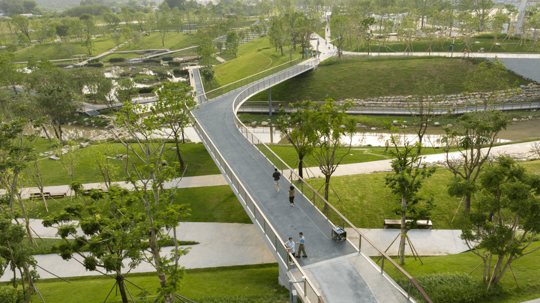 城市的快速建设,让车流与人流变得更快更匆忙,而河流,则在隐匿中被忽视,成为了“消失的附近”。现在,我们为这条河,建了这座公园;也是为每一个岭南水乡人,建一条连接水系的记忆纽带。