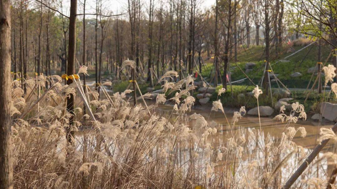 深秋,乌桕木红了,粉黛乱子草会如粉色的云雾海浪般扑面而来;冬日,池衫和落羽杉也渐渐有了红色的晕染,这是南国冬日里少见的专属颜色,远方的候鸟经过长途跋涉来到湿地湖边,或歇脚,或驻留。