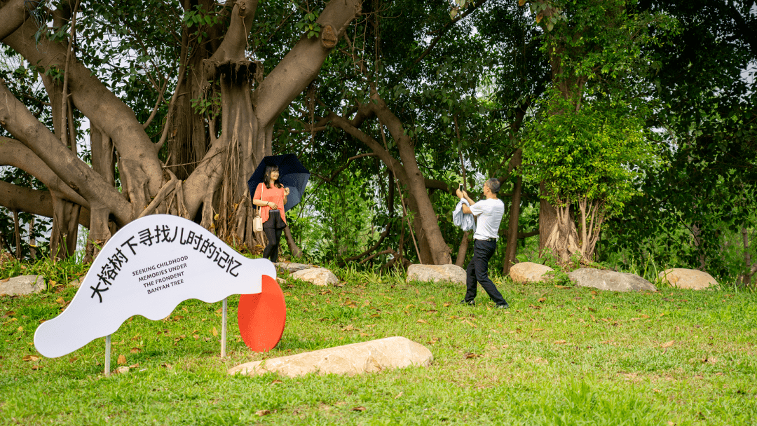 慢慢长到路上的湿地植被(上)和一棵滋养了水涧头村,如今被原样保留在中心公园里的大榕树(下)。一切都是那么“刚刚”,一切又是那么充满惊喜和期待。这是生命成长呼唤的时光和等待,自然和每一个你的共生,需要耐心。