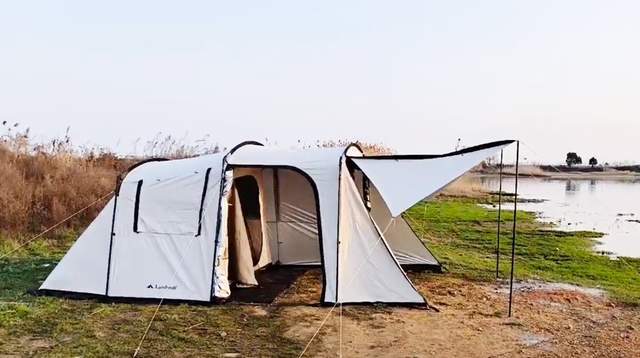 抵达螃蟹山后,选择稍微远一点的平坦地带,开始安营扎寨。最常见的是扎帐篷,还有露营的防风网罩,这些材料网上都有专门零售,至于折叠式的桌椅和台子,也有塑料加复合材料的品类,打包售出安装,十分简便。安装帐篷可以选择距离水岸近的平坦地带,可以近但要有限度,防止湖水蔓延;而水岸边的陆地,砂质为主,呈褐色,松软得很,铁钉打入,石块固定,比较牢固。这个过程很快,之后还要提前准备好水和电源,一切ok就能稍微休息下。