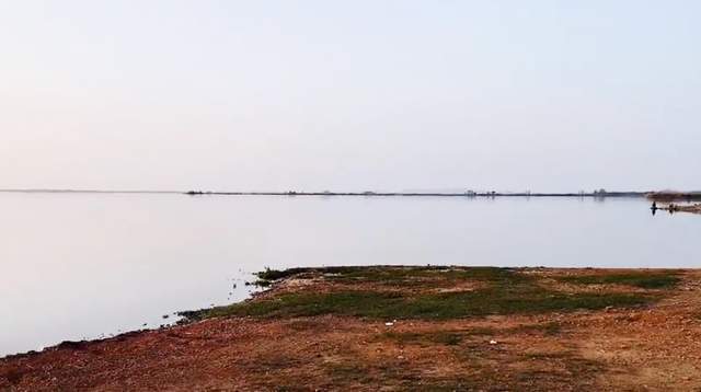 在螃蟹山边看到的鲁湖风景,有两种主题色,一是褐色的泥土与砂石。这个色彩的范围非常大,基本上东岸边全是如此,它又分成两个区域,靠近湖边和村落的。村落方向是我们来时的路,那里植被丰盛,建筑多,乡道蔓延,成为标志之一;而靠近湖边的景色,以砂石为主,没有种植植被的荒地,有一滩滩水渠,迎着光线,十分尖锐。砂石可能几十年来一直如此,除了自然风化的痕迹,鲜有人工干预。也是因为与村落距离远,所以连种菜的老年人都不过来。