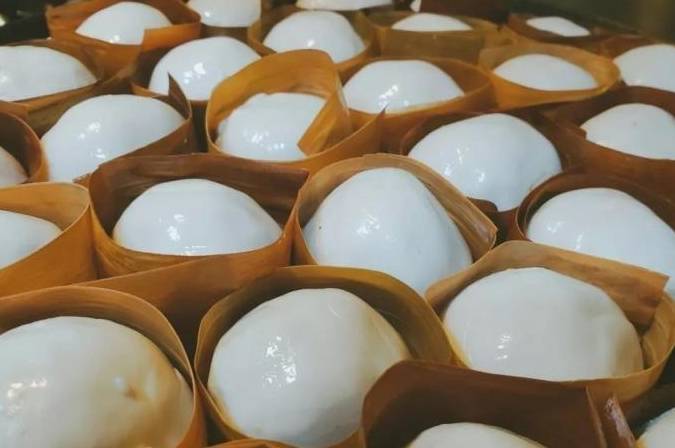 大埔忆子粄是广东大埔地方传统名点,属于粤菜系客家菜,至今已有300多年的历史。忆子粄为乳白色,造型别致,像茶盏一样,只有头露出来,四周都被包裹得严严实实,因为是用糯米制成的,口感黏韧。