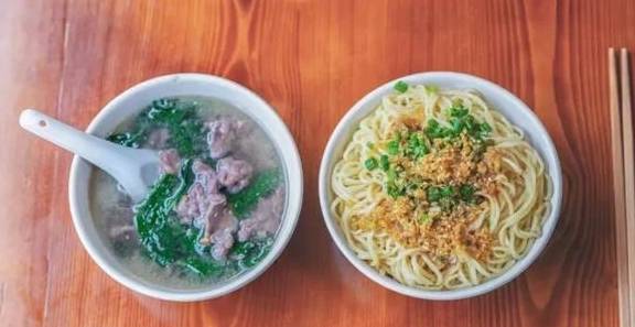 腌面应该是梅州地区最流行的一种客家小吃,是很多梅州人家乡的味道。不同于梅州城区只加蒜的腌面,大埔的腌面肉沫和青菜是必须加的,还有最后那一勺温热的猪油。吃腌面旁边必然少不了三及第汤,或是加上益母草,或是加点枸杞叶,一口面一口汤,这才是客家人心目中的标准搭配。
