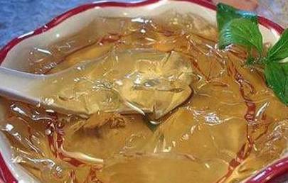 大埔凉粉糕是广东梅州的传统名小吃,属于粤菜系,已有800年历史。呈半透明凝固状,具棕褐至茶褐的仙人草本色,含胶质多,富弹性,有天然仙人草风味,并略带碱香。食用时,可加入白糖或牛奶,爽滑可口,清凉解热,有清热滤湿、凉血降暑等功效。