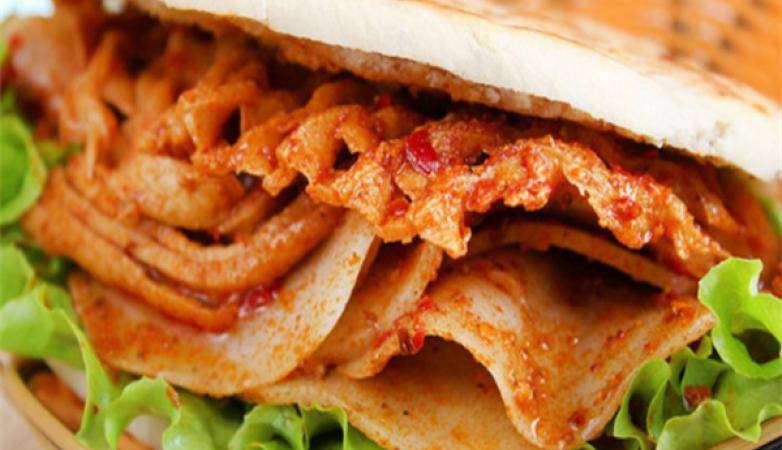 这款肉夹馍绥德最易有名,馍是绥德传统美食油旋,肉用的是卤猪头肉,吃着肥而不腻,油旋的酥脆夹着猪头肉,大口大口的吃着才够味,才好吃,如果你没吃过那就赶紧去尝尝吧。