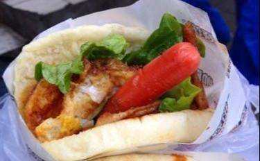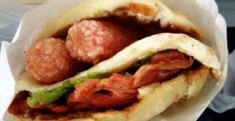 蛋肠夹馍在地摊和学校旁随处可见,一根脆皮肠和一个煎蛋,再刷上特制的辣酱,吃一个都不够解馋的。