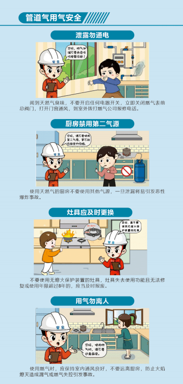 一、使用燃气时,应保持室内通风良好,不要远离厨房,防止火焰熄灭造成漏气或燃气失控引发事故。