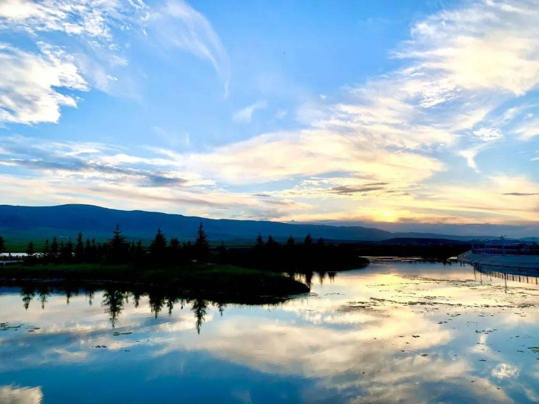 金湖又称西湖,位于西海镇青海两弹一星干部学院对面,从省会西宁驾车1小时左右到 达,占地面积约2.5平方公里,由三个小湖组成,湖与湖之间由堤坝和木桥连接,酱红色的健身小道在阳光的照耀下非常醒目,湖里种植的芦苇在夏日里郁郁葱葱、生机盎然, 赤麻鸭(黄鸭)、 麻鸭、 鱼鸥(钓鱼郎)、 苍鹭、 红腿鹬等水禽在河汊里嬉戏......无需准备装备物资,就可以省心、惬意地拥抱自然、宿于金湖边,是绝佳露营度假秘密基地。