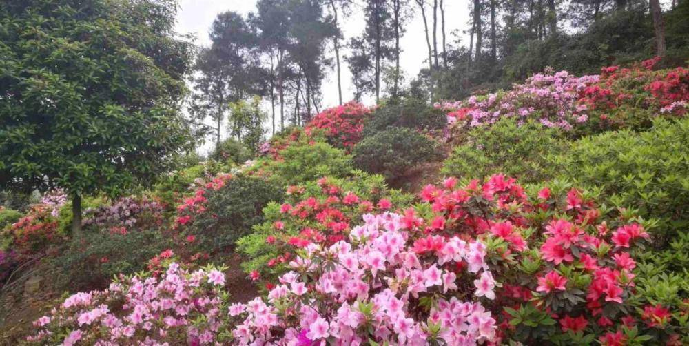 目前,铁山坪森林公园的杜鹃园迎来了盛开季,绵延成片的杜鹃花夹道盛开。公园里的睡莲也陆续开放,红枫树叶正红,都是观赏的最佳时节。