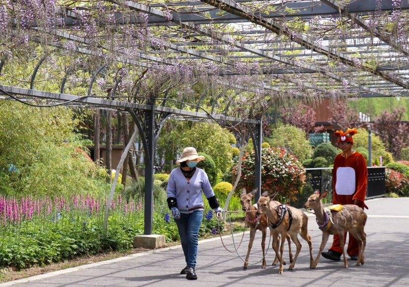 出片tips:东平国家森林公园内,长穗花紫藤已进入盛花期。东平国家森林公园千米紫藤长廊以铁艺镂空雕塑的形式,将紫藤元素演绎成四种形式的特色栏杆形式,同时也将“春、夏、秋、冬”四个元素贯穿其中。紫藤长廊作为打卡点,每天上午10:45-11:45,下午14:15-15:15鹿乐苑“东东”、“平平”、“波妞”等宝贝巡游途径此处,等待与你的偶遇,萌化你的心。