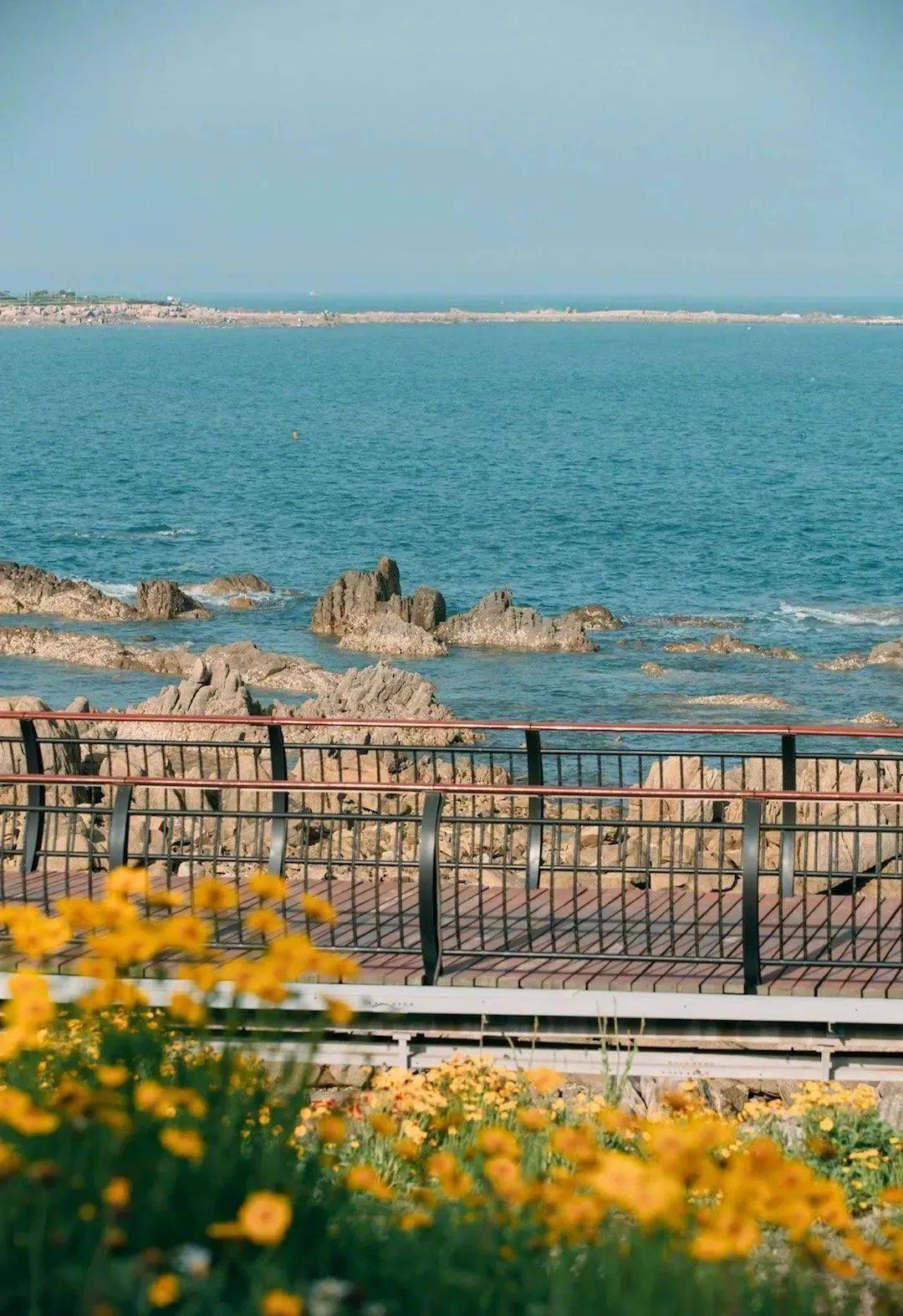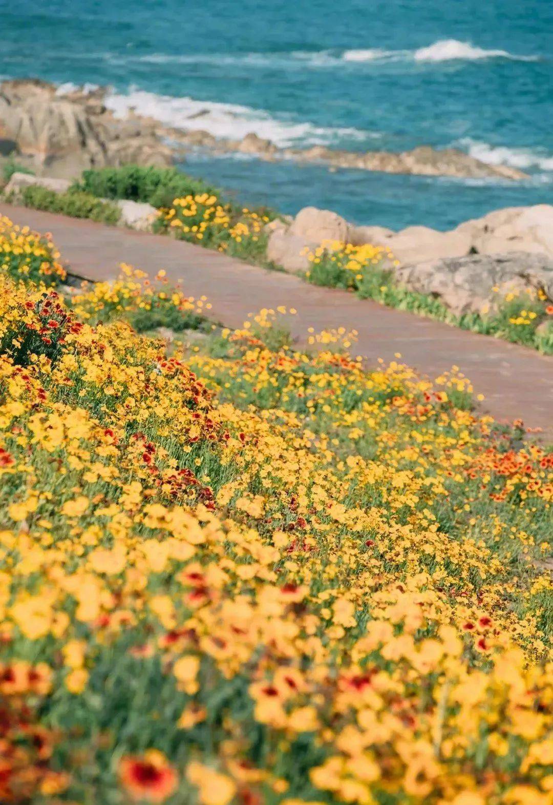 一路穿梭在花海中,旁边就是浩瀚的大海,听着涛声阵阵,闻着淡淡花香,最浪漫的场景,也不过如此。