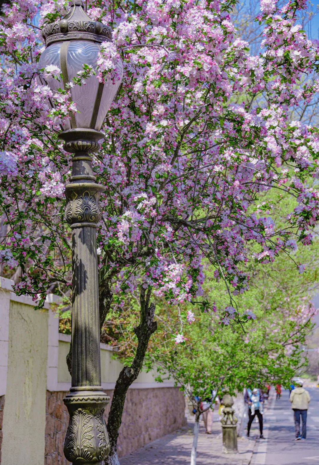 春天游八大关,最好的月份便是四月和五月,这个时间,有两条花路花开正好,宁武关路的海棠花路和韶关路的碧桃花路,让本就很美的八大关变身浪漫的花海秘境。