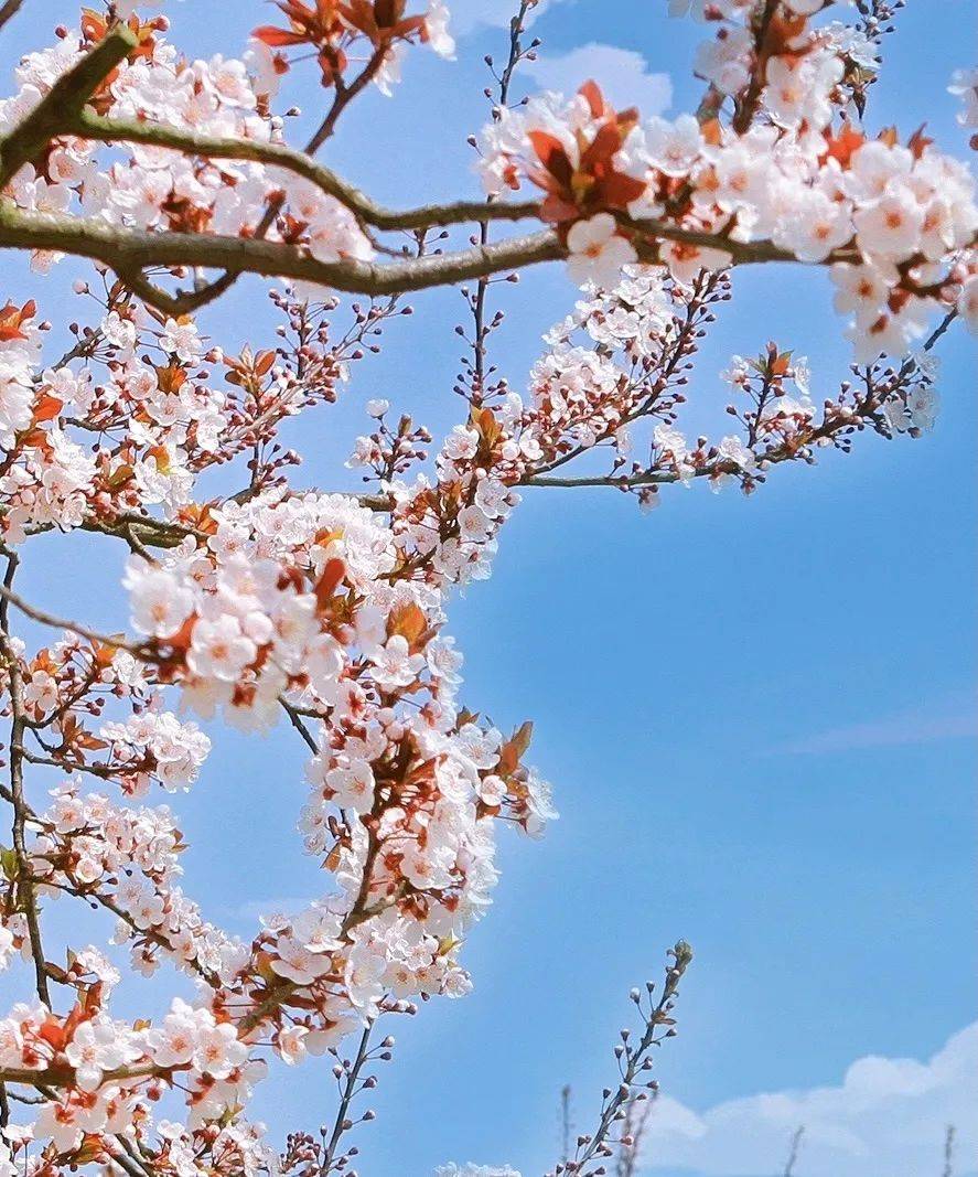 很多人误以为海安路两侧是樱花,樱花和紫叶李乍看有些相似,但实际上却完全不同,紫叶李花叶同枝,叶子呈紫红色,一个枝芽一朵花,而非樱花般簇状花朵。