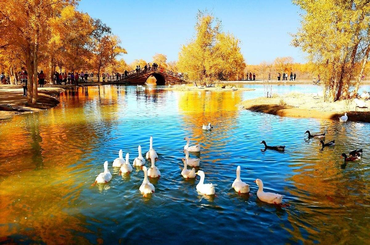 金塔沙漠胡杨林景区位于河西走廊古丝绸之路中段北侧、甘肃省酒泉市金塔县城西北8公里处,由金波湖一胡杨林核心游览区、入口综合服务区、沙枣林观光区、瀚海红柳林保育区、沙漠娱乐体验区、沙漠芦苇迷宫区组成,景区内森林覆盖率达到72%,是县城周边最大的绿色生态屏障,也是西北最大的人工胡杨林。金波湖碧波荡漾、胡杨林金碧耀眼、沙枣花清香扑鼻、野生动物种类繁多、红柳红妍秋醉、芦荻白花寒吹、沙滩柔绵、阳光迷人,是度假的好去处。