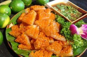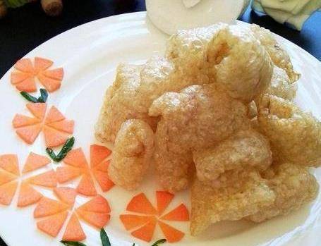回到我们刚才所说的,炸猪皮传到英国后,没想到却被英国人发扬光大了。英国人尝过了中国的炸猪皮后,觉得非常美味,然后便引进做成英国风味小吃。他们将炸好的猪皮配上英国特有的酱料,放在一起吃,可以说是把炸猪皮吃出了新花样。