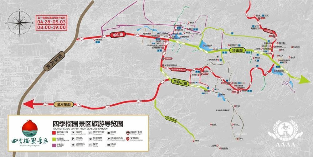 ▲四季榴园景区五一期间旅游导览图。 图片来源/四季榴园景区官网