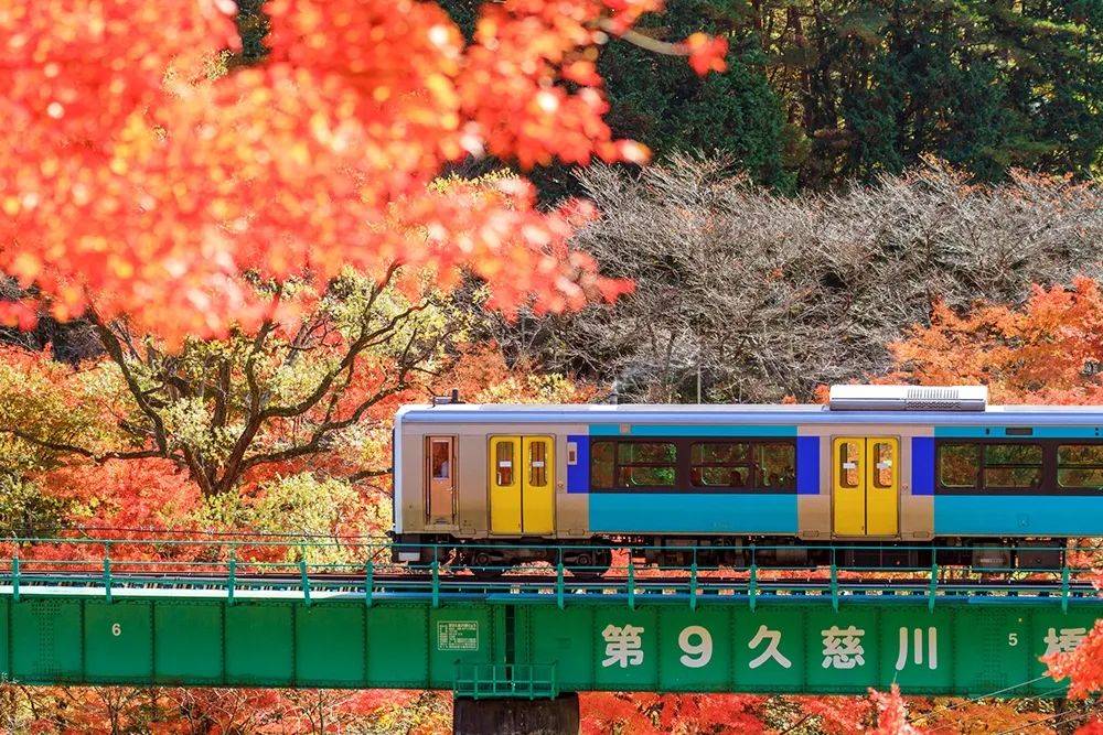 ○穿行于满山红叶中的JR水郡线 @图源网络