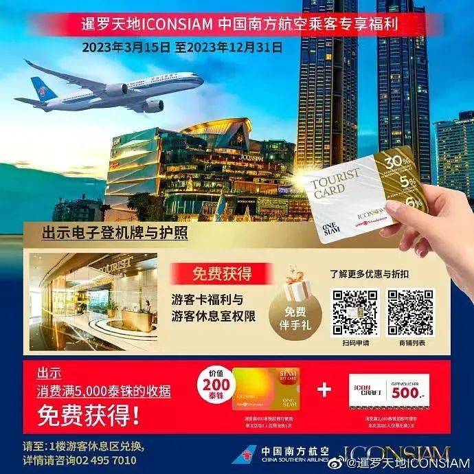 ○暹罗天地ICONSIAM与中国南方航空公司合作及推出的专项优惠 @图源官方