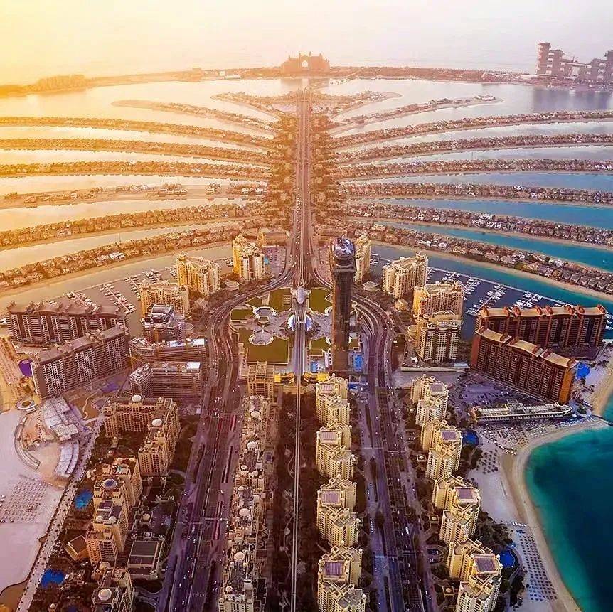 ○从新落成的Nakheel Mall塔楼景观平台The View鸟瞰朱美拉棕榈岛 @图源网络