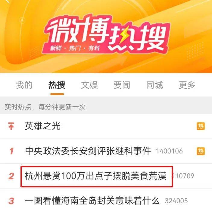 ○一度冲上微博热搜TOP2的「杭州美食」