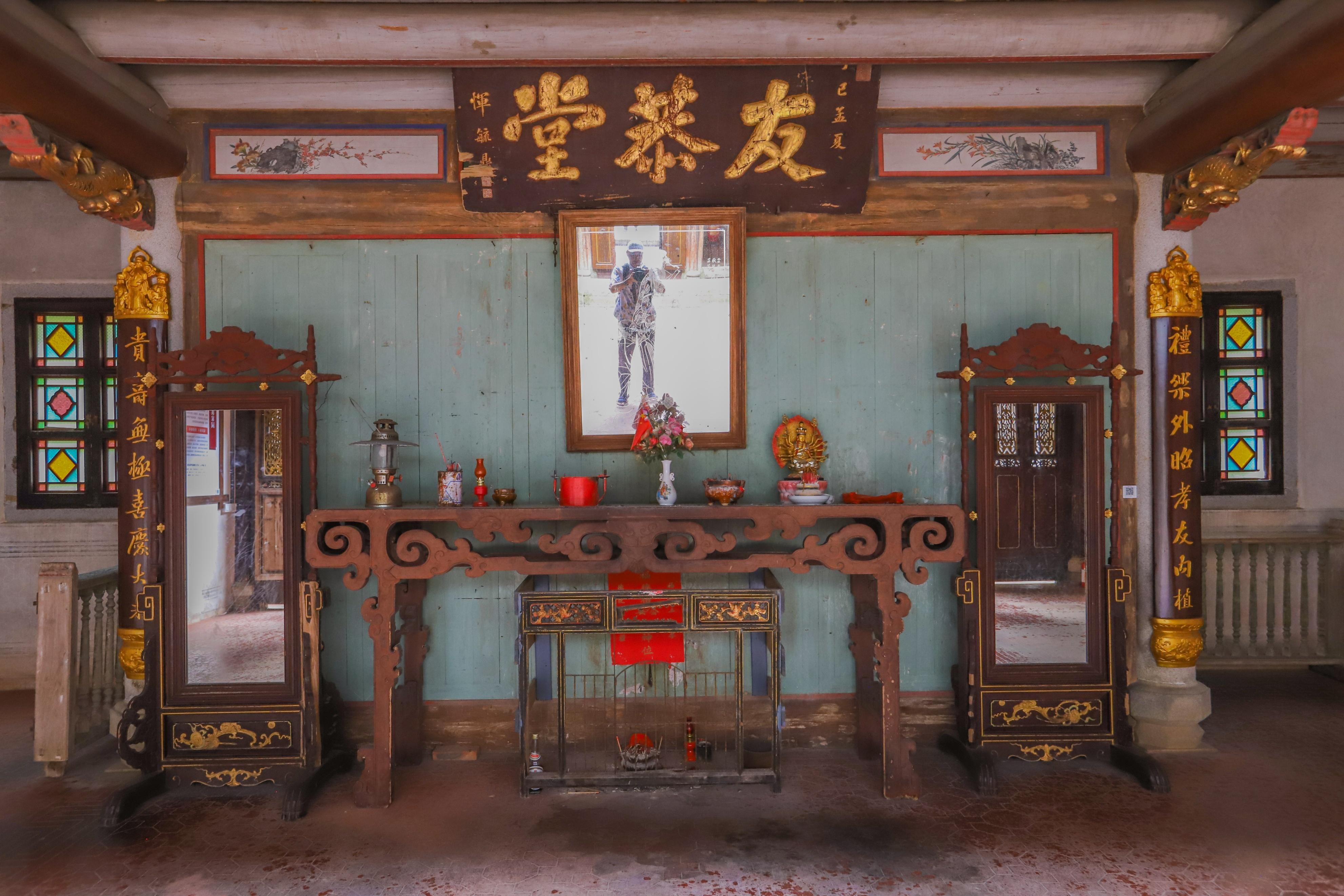 其次是,屋内装饰华美,既有精美绝伦的传统’四大名雕〞工艺(具体为石雕、木雕、瓷雕和彩塑),又有远自西洋的五彩玻璃等装潢技巧。