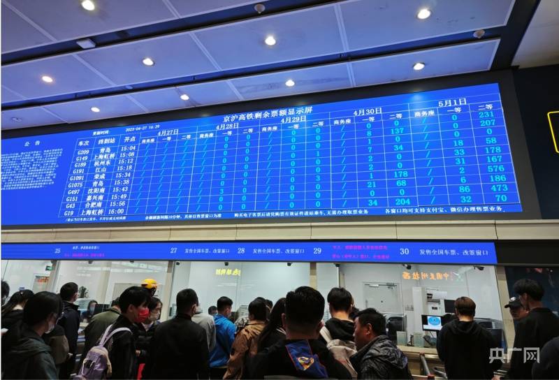 4月27日,记者前往北京南站售票处,据工作人员介绍,27日京沪高铁所有列车班次均已售罄,28日还有少量余票,29日作为五一假期的第一天,目前也已无票。