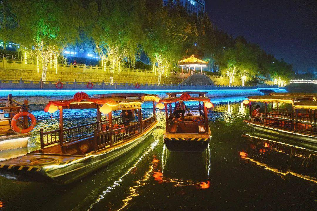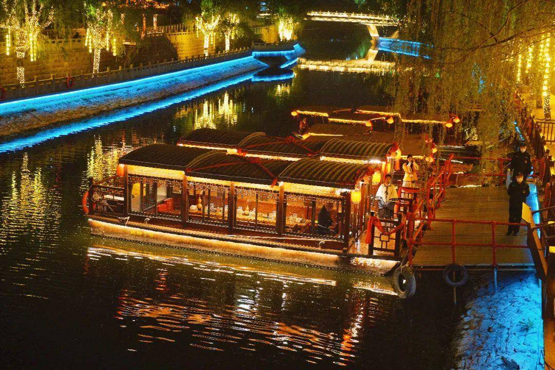 一艘水上画舫游船,东起东大寺,西至会通桥,全长约2.1公里,有摇橹船、画舫游船供游客选择。