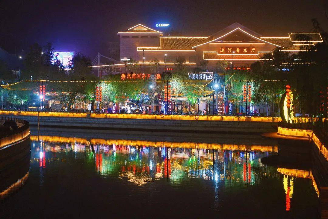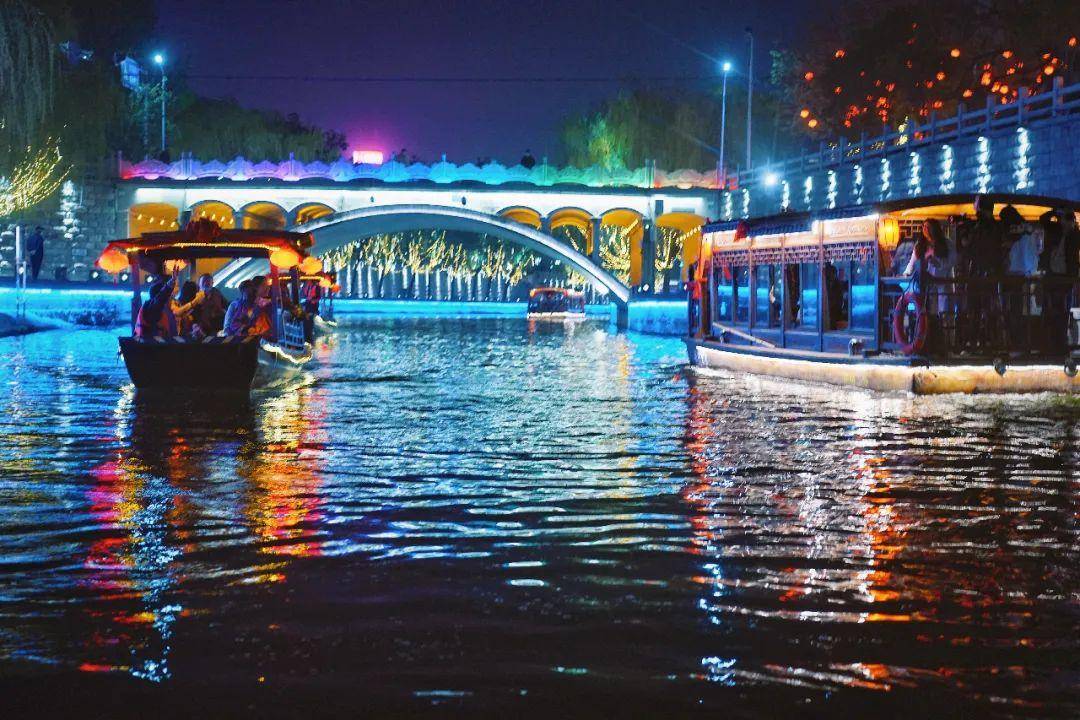 古运河夜间景观,灯光璀璨夺目,虽在江北,仿似江南。