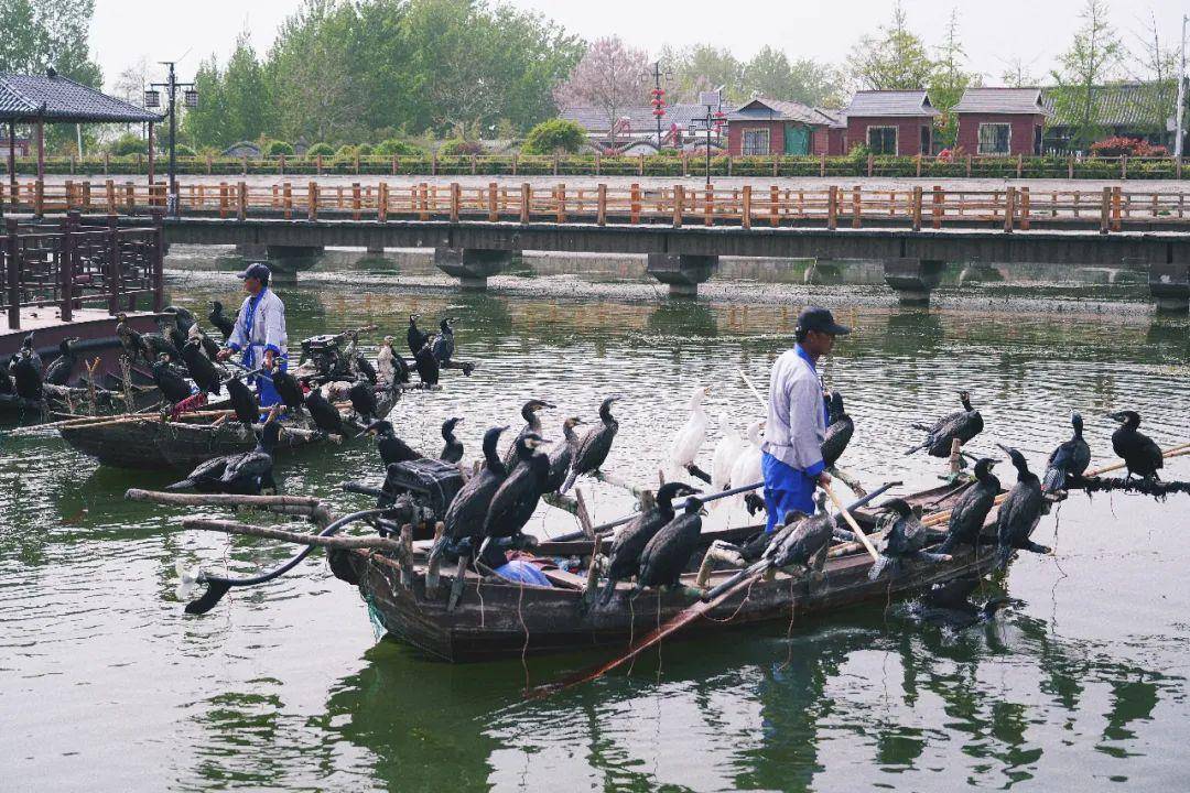 门票50元含往返船票,坐上游船到达南阳古镇,先在红色码头观看了一场渔鹰表演。