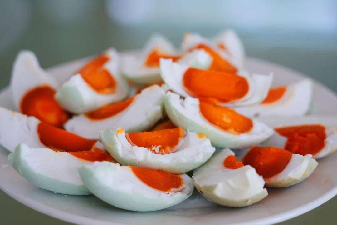 当地的咸鸭蛋色泽橙黄,也很有名。